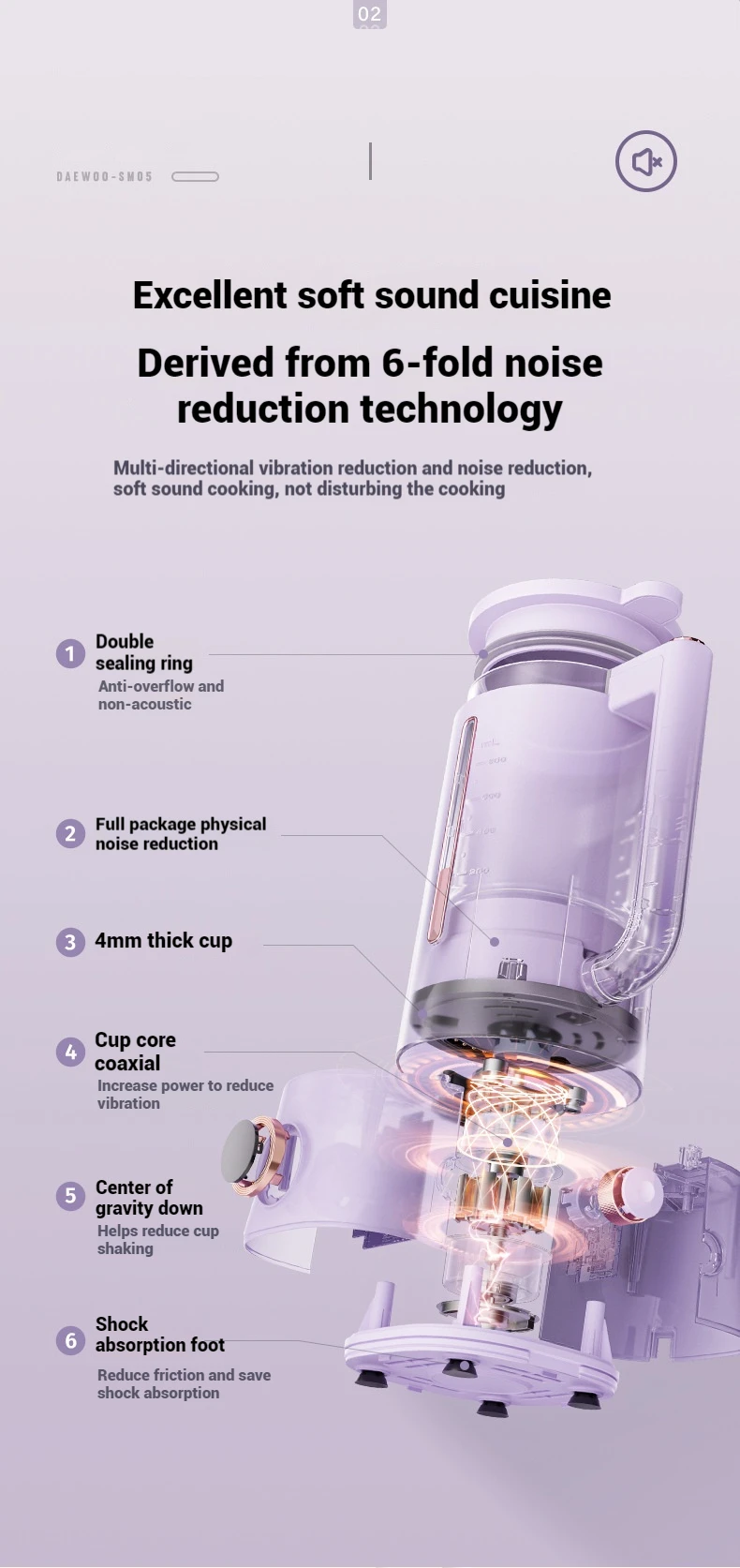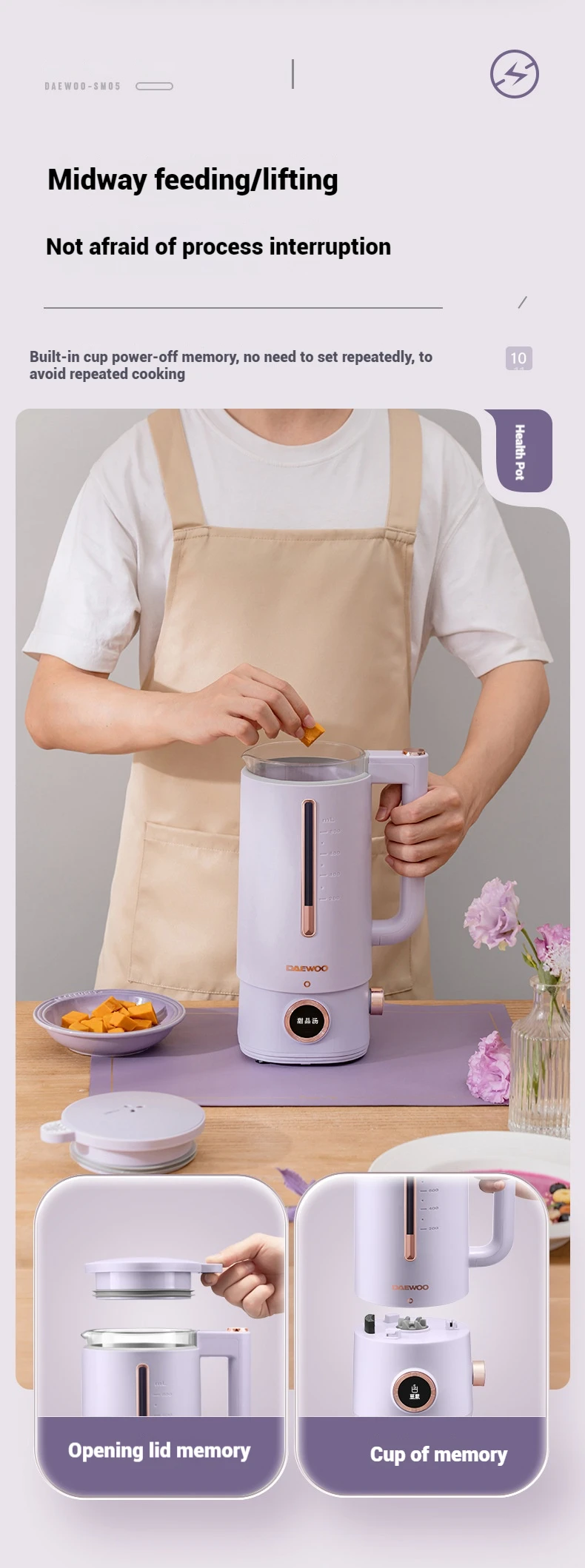 Daewoo Wall breaking Machine Auxiliary Food Multi functional Household Non silent Mini soybean milk Machine Heating Automatic Co